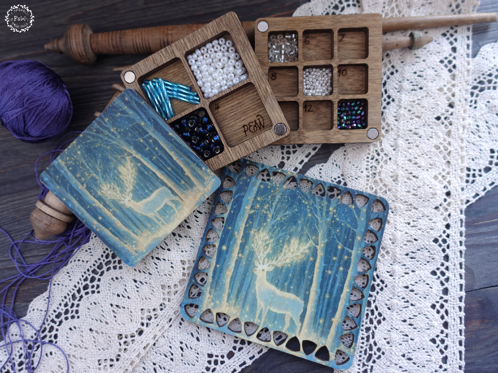 Красивая, компактная, удобная, с супер-сильными магнитами - идеальная бисерница с принтом "Волшебный олень".
