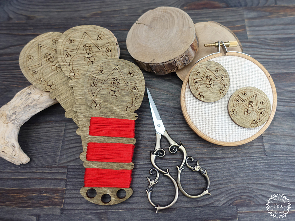 Уменьшенные узкие прорези для мулине, чтобы ниточка не выскальзывала, рассчитана на три цвета ниток + есть три отверстия (d 8 мм) для закрепления отрезанных пасм.