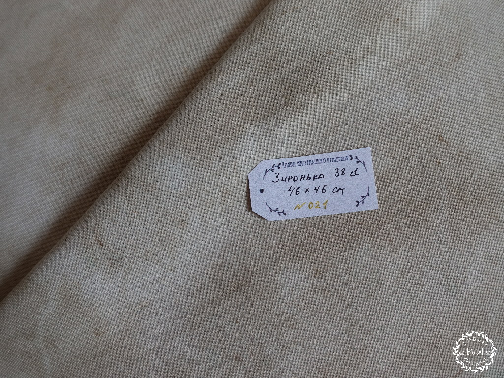 Основа Звёздочка 38 каунта, состав 48% хлопок + 52% ПЭ. Окрашена натуральным красителем. Размер 46х46 см, край оверлочен.