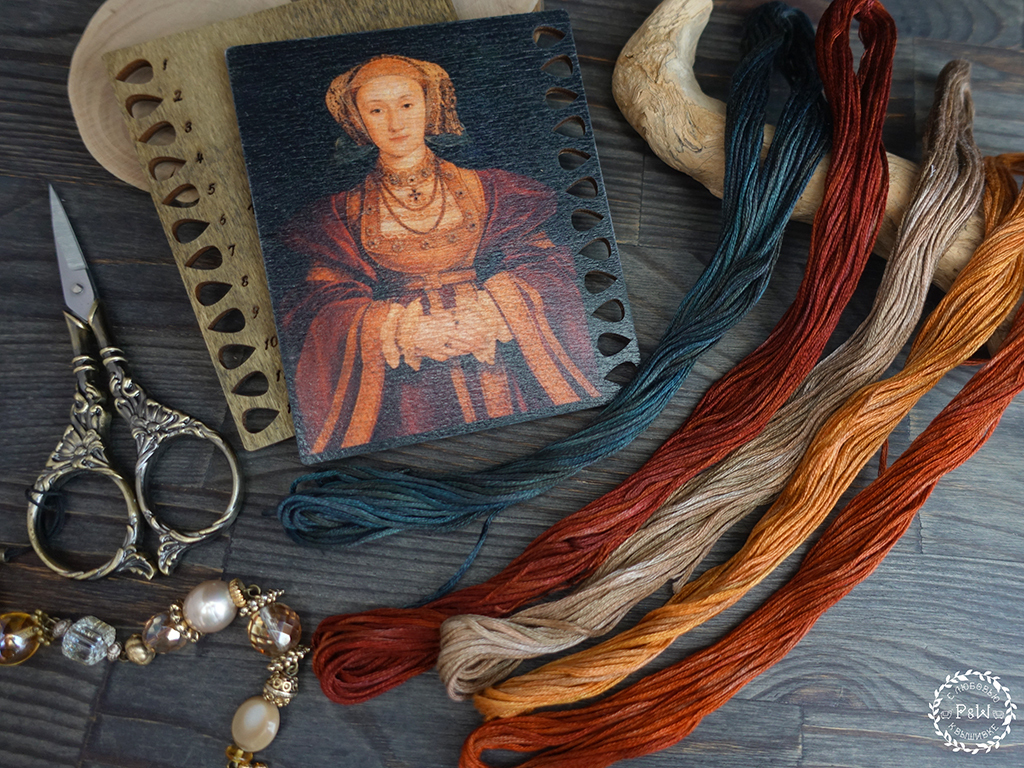 Органайзер с принтом портрета Анны Клевской кисти Ганса Гольбейна 1539 года, рассчитан на 12 цветов мулине (гравировка нумерации на обороте), размер органайзера 9х11 см, отверстия под пасмы удобной каплевидной формы размером 9х6 мм. Принт закреплен и дополнительно отшлифован вручную, не сотрется и не выцветет.
