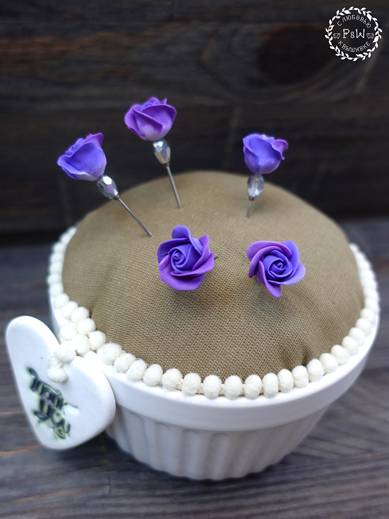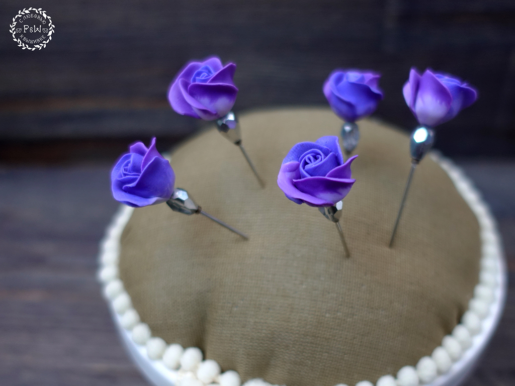 В основе крупная швейная игла, длина с декором ~6 см. Размер цветка ~ 1,5х1,5 см.
