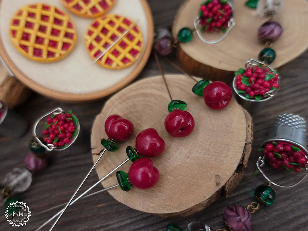 Эти вишенки не опадут, не испортятся и не завянут, будут с вами долгие годы - украшением игольницы, помощниками в процессе и изюминкой на ваших вышивальных фотографиях.
