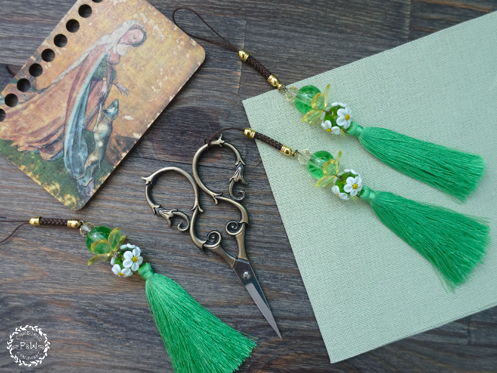 Роскошный маячок с бусинами лэмпворк и кистью из иск. шелка ручной работы.