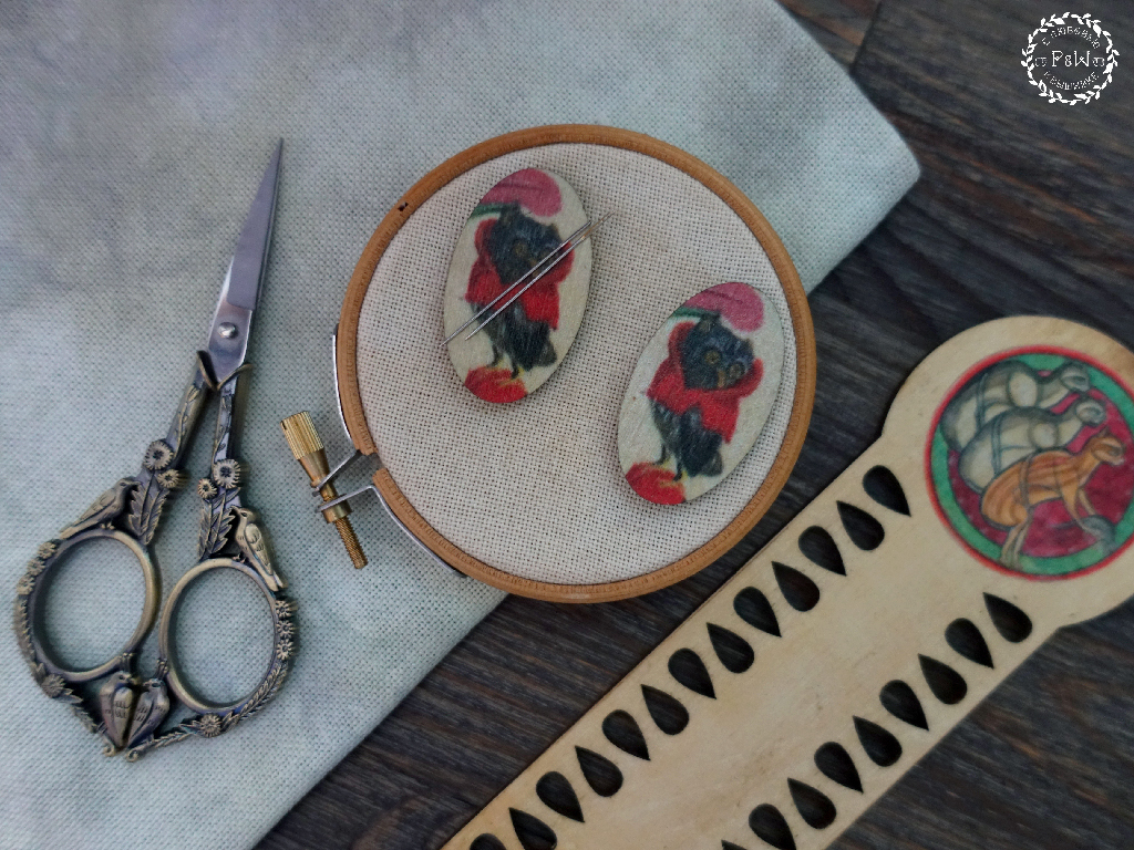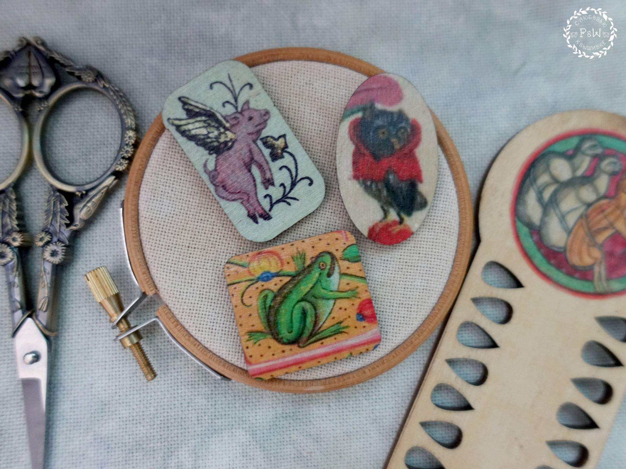 Деревянный кабошон с принтом усталой совы в плащике :) из средневекового манускрипта. Размер деревянного кабошона 42х25 мм.