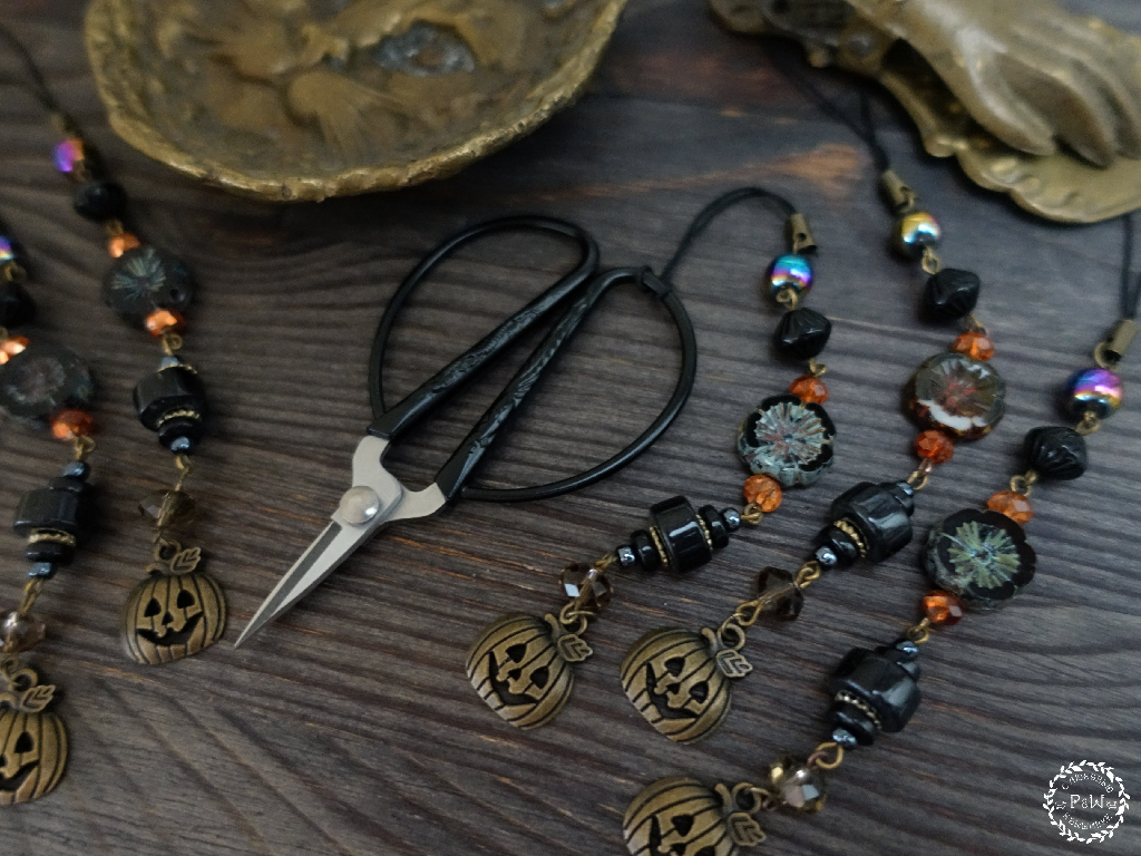 Атмосферный хэллоуинский маячок для ножниц с подвеской-тыквой.