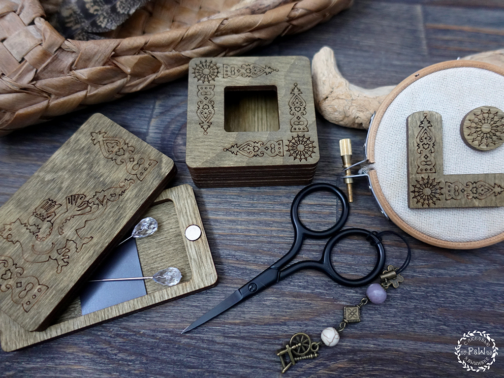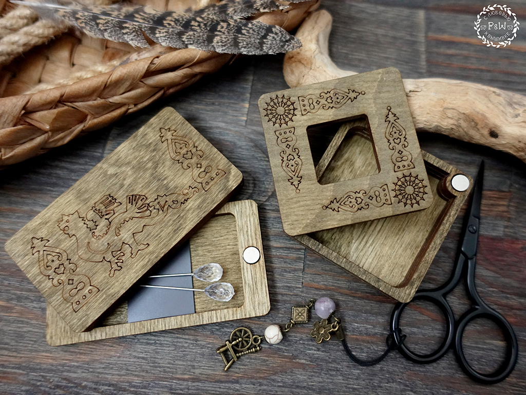 За счет орнамента прекрасно сочетается с магнитной игольницей "Дракон" и комплектом магнитов "Русский уголок".