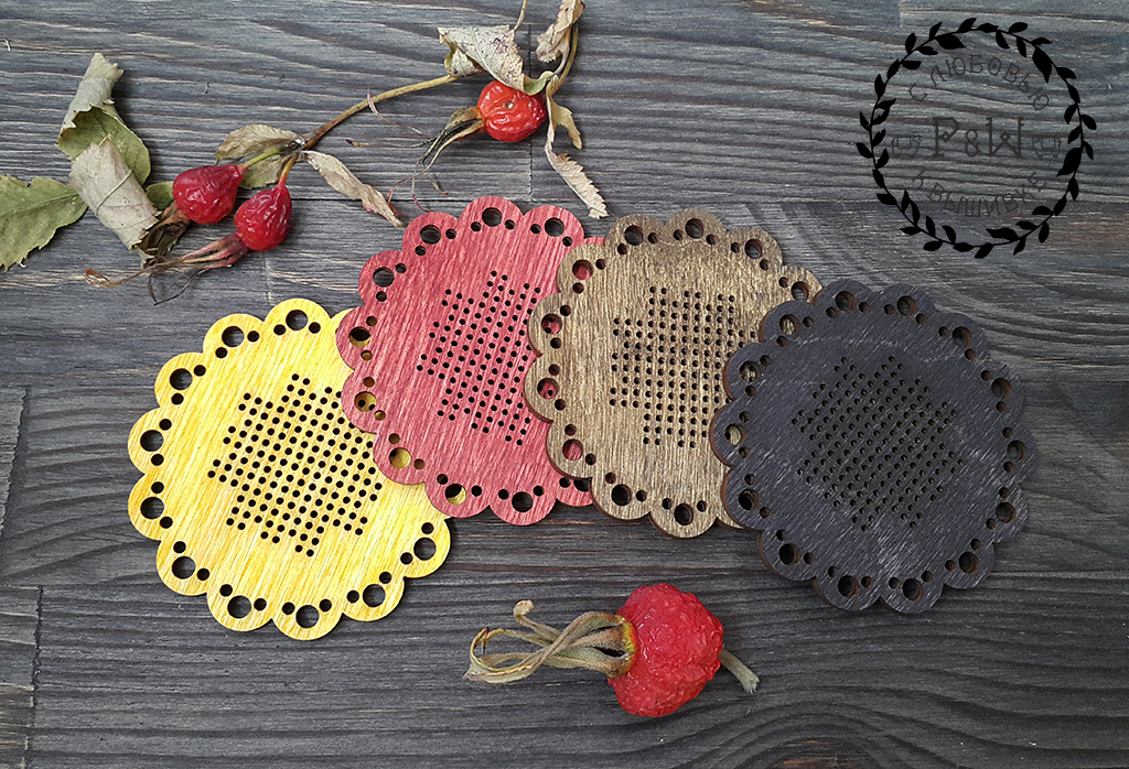 Материал фанера, толщина 3-4 мм, диаметр 7 см.