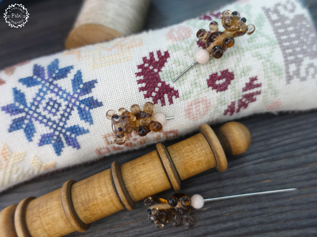 Крупный пин собран на острой и длинной швейной игле, общая длина пина ~ 7 см.